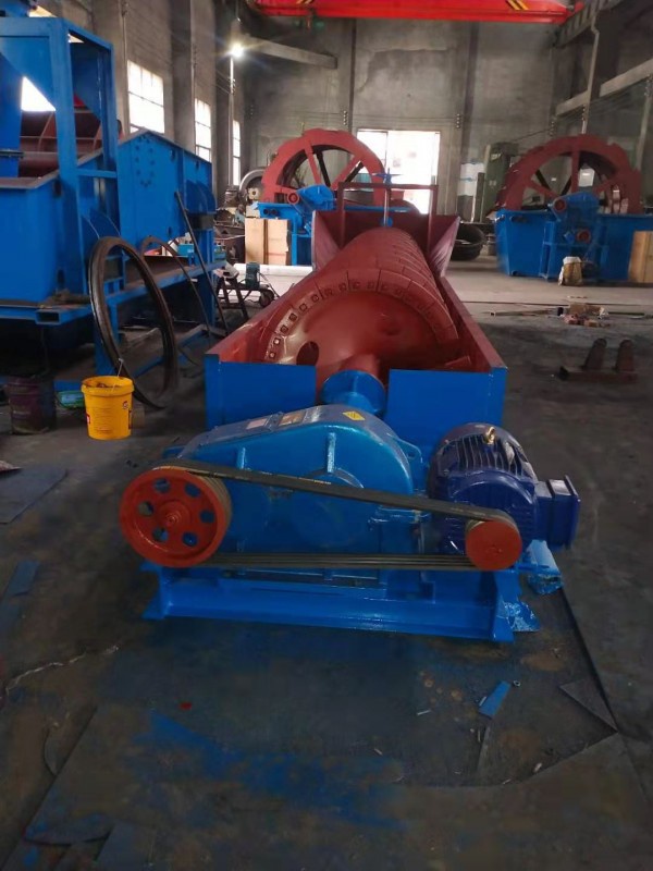 工作时,电机通过三角带、减速机、齿轮减速后带动叶轮缓慢转动,砂石有给料槽进入洗槽中,在叶轮的带动下翻滚,并互相研磨,除去覆盖砂石表面的杂质,同时破坏包覆砂粒的水汽层,以利于脱水;同时加水,形成qiang大水流,及时将杂质及比重小的异物带走,并从溢出口洗槽排出,完成清洗作用。干净的砂石由叶片带走,.后砂石从旋转的叶轮倒入出料槽,完成砂石的清洗作用。