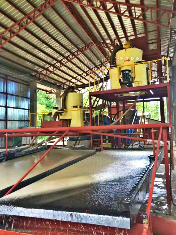 菲律宾选铜金矿现场,使用球磨、分级机、离心选矿机、摇床等设备组合。